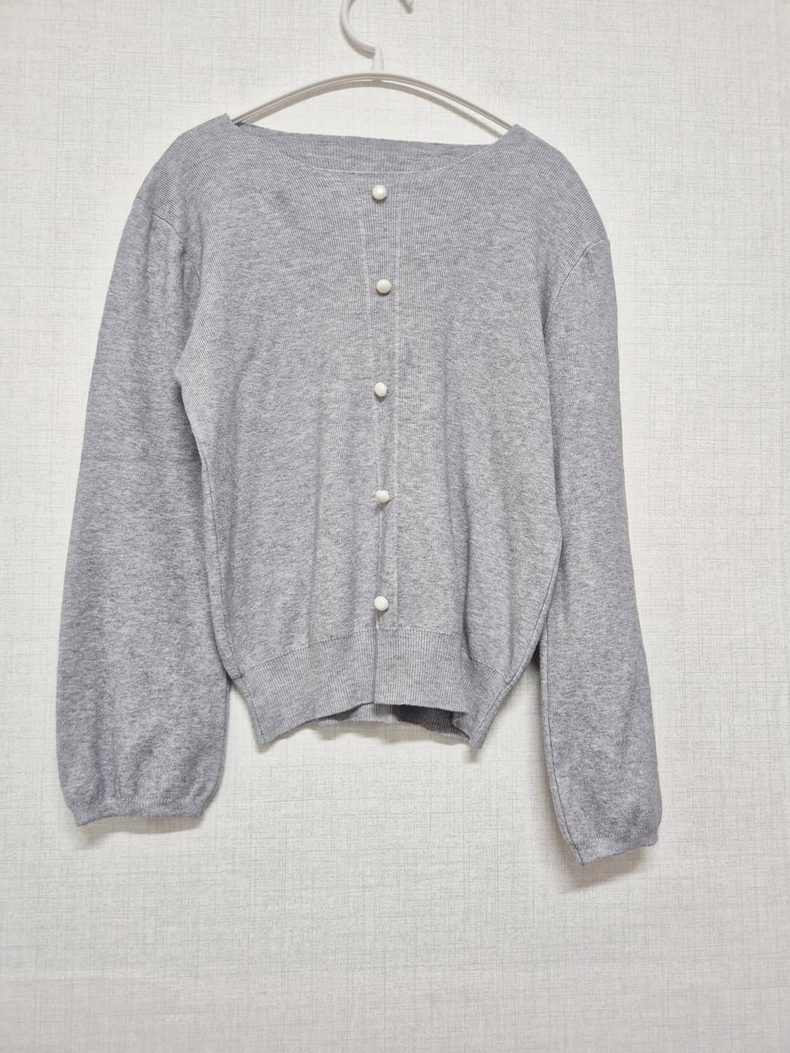 깔끔한 디자인의 회색 티셔츠 입니다 진주 단추가 포인트로 들어가서 고급스러워요 어떤 옷에나 잘 어울려서 활용도가 높답니다 데일리룩으로 편하게 입기 좋아요 프리사이즈 입니다 반값&일반택배 선택가능 다른제품과 같이구매시 할인 들어갑니다