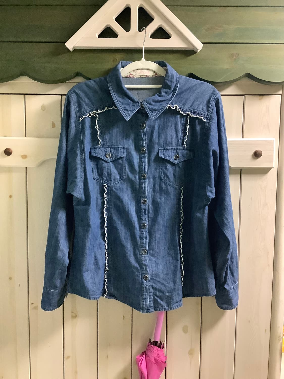kikyoa.room <구매 완전 이뻐요. 핏도 예쁩니다. 청 남방 중에서도 흔하지 않은 디자인이라 소장가치 100이에요. 완전 봄. 여분 단추 o. 한 번 시착 후 착용 안 했어요. 하자 오염 이염.. 없고, 상태 최상! 표기 사이즈는 0이에요. 🪷안전결제! 어깨 40 가단 47 총장 62 소매 61 암홀 31