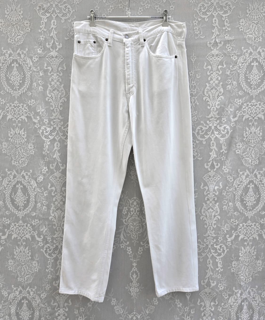 총장: 101 cm 허리 : 40 cm 미디 : 30cm 허벅 : 30 cm 밑단 18cm 소재: 레이온 55 % 면 45% 표기사이즈 32 안녕하세요~ 봐주셔서 감사합니다. 95년도 일본 생산 리바이스 515 입니다. 더운 일본에서만 볼수있는 얇은 원단입니다. 시원한 레이온 혼방이네요. 여름에 입기 좋을겁니다. 31-32인치