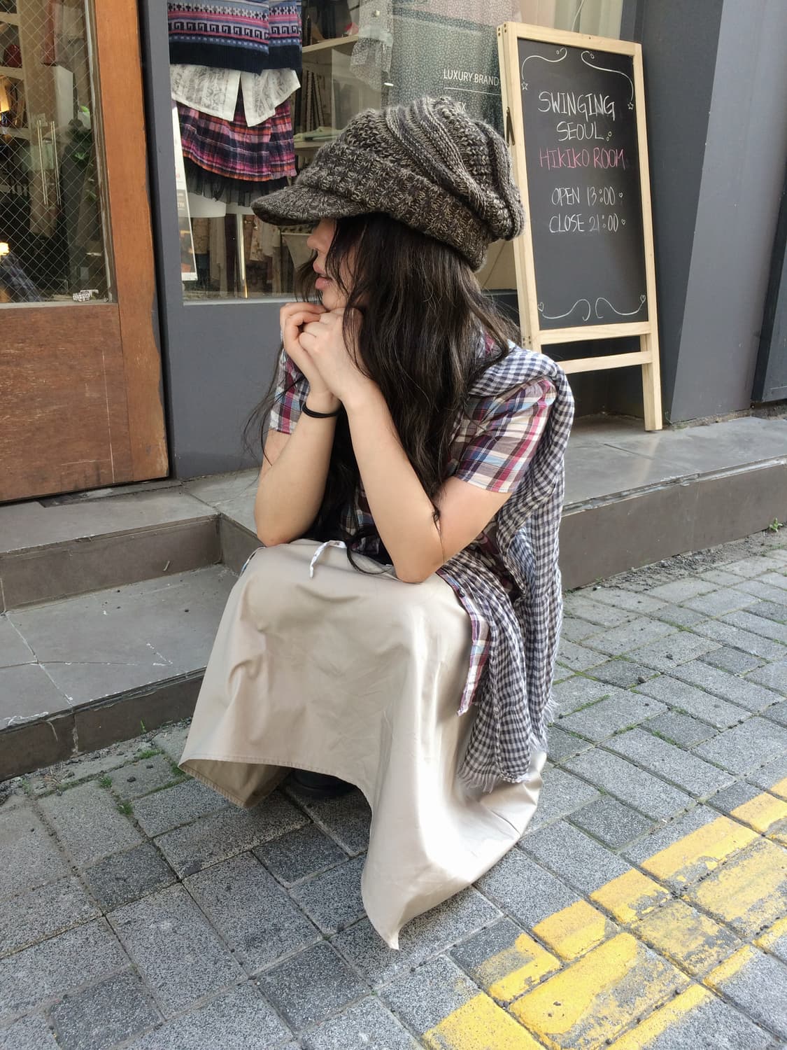 체크 베이지 모리 세트