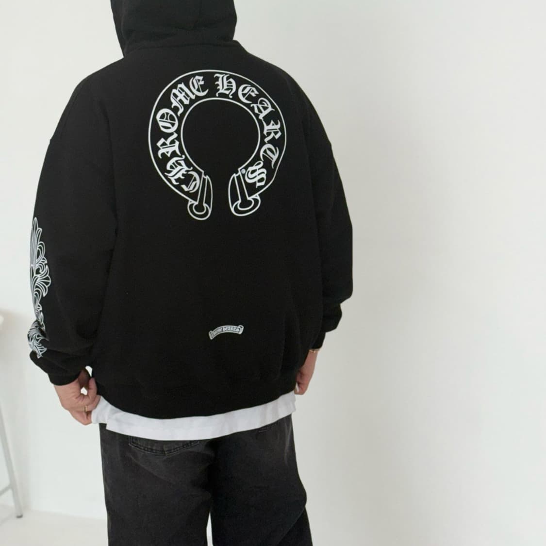 크롬하츠 후드집업 판매합니다 오사카 빈티지샵에서 대략 3만5천엔에 구매하였으나 사이즈 미스 로 인해 판매합니다ㅠㅠ 남성분은 웬만하면 사이즈 괜찮을 것 같고 여성분도 오버핏으로 추천드려요 가격이 가격이니 만큼 가품일 확률이 99%이니, 싼 값에 크롬하츠 삘 내고 싶으신 분들께 추천드립니다. 퀄리티는 정말 좋아요 사진 그대로 입니다!! 어깨 66cm / 가슴 67cm / 소매기장 63cm / 총장 67cm 별도문의 없으시면 바로 안전결제 부탁드려요! 실착1회 / 사이즈 L 환불·교환 불가입니다!!