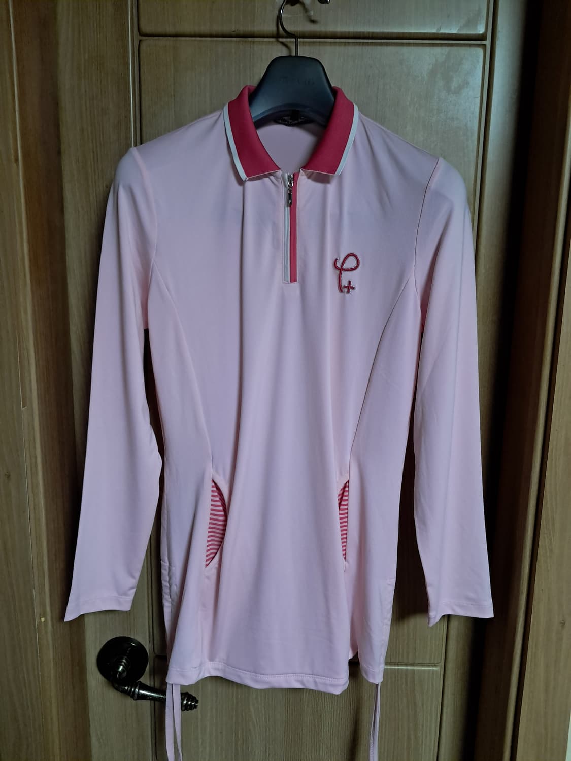 새옷수준 봄여름가을용 사이즈90 가슴46 총장70 어깨36 팔55 폴리에스터92 스판8 도톰하고 시원한 재질 부드러운 감촉 신축성 뛰어나요 포켓2 옆구리라인 하단 스트링 자수로고 라이트 핑크