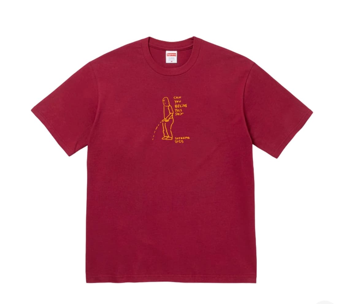 슈프림 25SS Supreme Piss T-Shirt Cardinal 스타일이 맞지 않아 판매합니다. LA 슈프림 매장에서 직접 구매하였습니다.