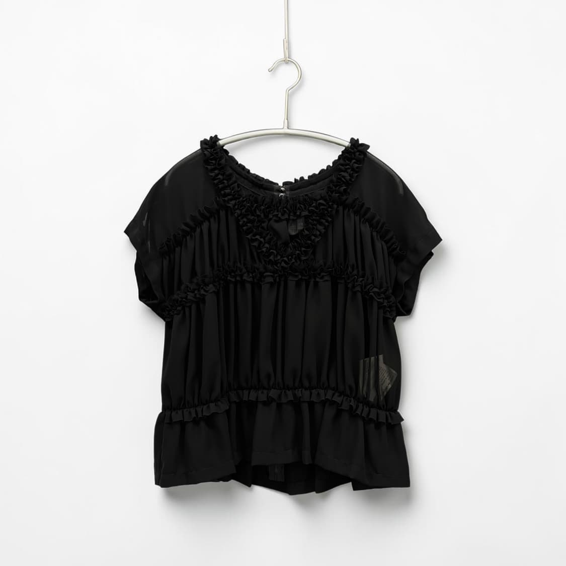 꼼데가르송(COMME des GARCONS)의 AD2021 러플 탑입니다. 시어한 폴리 소재 위에 풍성하게 잡힌 러플 디테일이 입체적인 실루엣을 만들어주며, 가볍게 퍼지는 볼륨감이 특징입니다. 단독으로도 충분히 포인트가 되는 아이템으로, 미니멀한 하의와 매치 시 브랜드 특유의 아방가르드한 무드가 돋보입니다. SIZE - (XS) Chest 47cm, Length 51cm CONDITION - Good condition with no noticeable flaws. 하자 없이 좋은 컨디션입니다. COMPONENTS - X ‎* 정품이 인증된 제품만을 취급하고 있으며, 명품 감정사가 검수 후 발송하고 있습니다. 메세지로 문의 부탁드립니다 :) ‎* 오프라인 매장과 동시 판매 중인 상품입니다. 발송 전 매장에서 먼저 판매될 경우 주문이 취소될 수 있는 점 양해 부탁드립니다. @meama.love Purchase or Contact DM SECONDHAND LOVE SHOP MEAMA