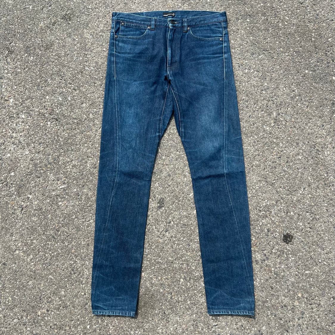 🕸️ Lad Musician 일본 생산. 1995년, 쿠로다 유이치에 의해 설립되었으며 음악과 옷의 결합이라는 컨셉으로 현재까지도 장수하고 있는 일본을 대표하는 모드계 브랜드 라드 뮤지션. 일반 팬츠와는 다르게 아웃심을 전면부로 좀 더 땡겨 모래시계 같은 독특한 패턴 메이킹이 특징인 스키니 진입니다. 좋은 컨디션입니다. - 32Inch(40.6cm) 총장 103 허벅지 28.5 밑단 15 밑위 25 (cm) - Price : ₩ 125,000 - 빈티지, 세컨핸드 제품 특성 상 교환, 환불이 불가하며 미처 발견못한 오염이 있을수도 있으니 민감하신 분들은 신중하게 고민 후 구매 진행 부탁드립니다. #라드뮤지션 #ladmusician
