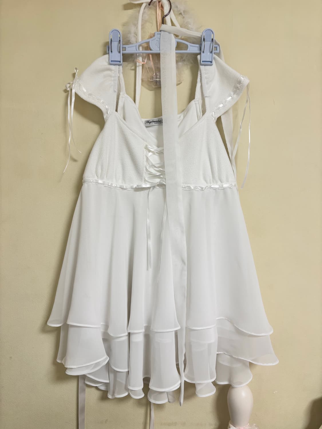 1회 착용 드라이 0 한번 입었는데 소재 특성상 보풀처럼 보이는 느낌이 있어요 허리 끈 한쪽이 입자마자 떨어져서 그냥 접착제로 대충 붙여서 입었습니다… 한쪽은 아마 드라이클리닝 갔다가 떨어진 것 같아용 한쪽은 끈이 없어요 두번째 사진에서 얼룩도 확인해주시고 감안해서 구매하실 분만 연락주세요