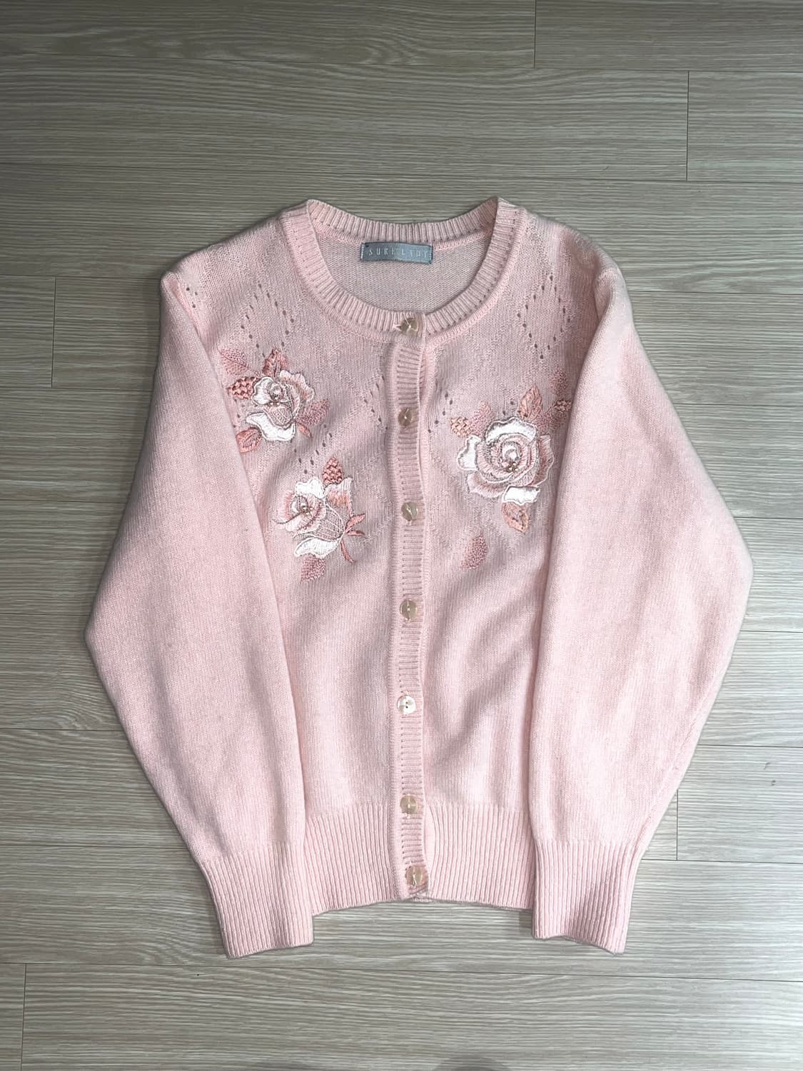 장미 자수 핑크 가디건