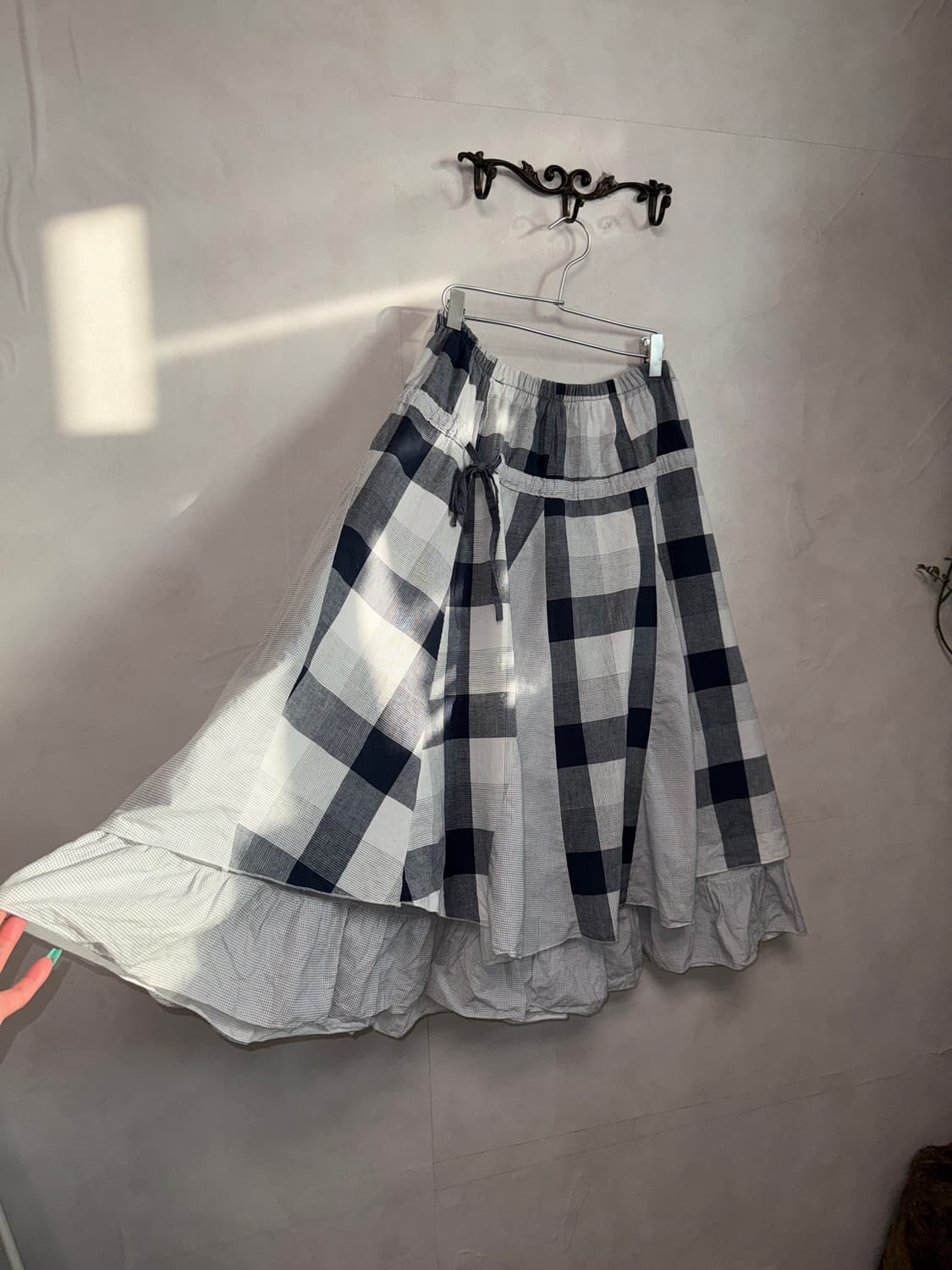 Red navy dot check pleats skirt