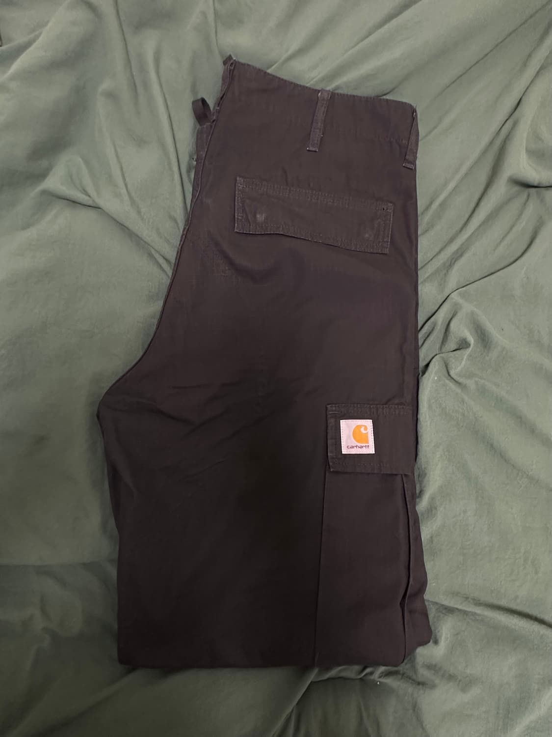 • [37] 칼하트 WIP 립스탑 레귤러 카고팬츠 올리브 그린