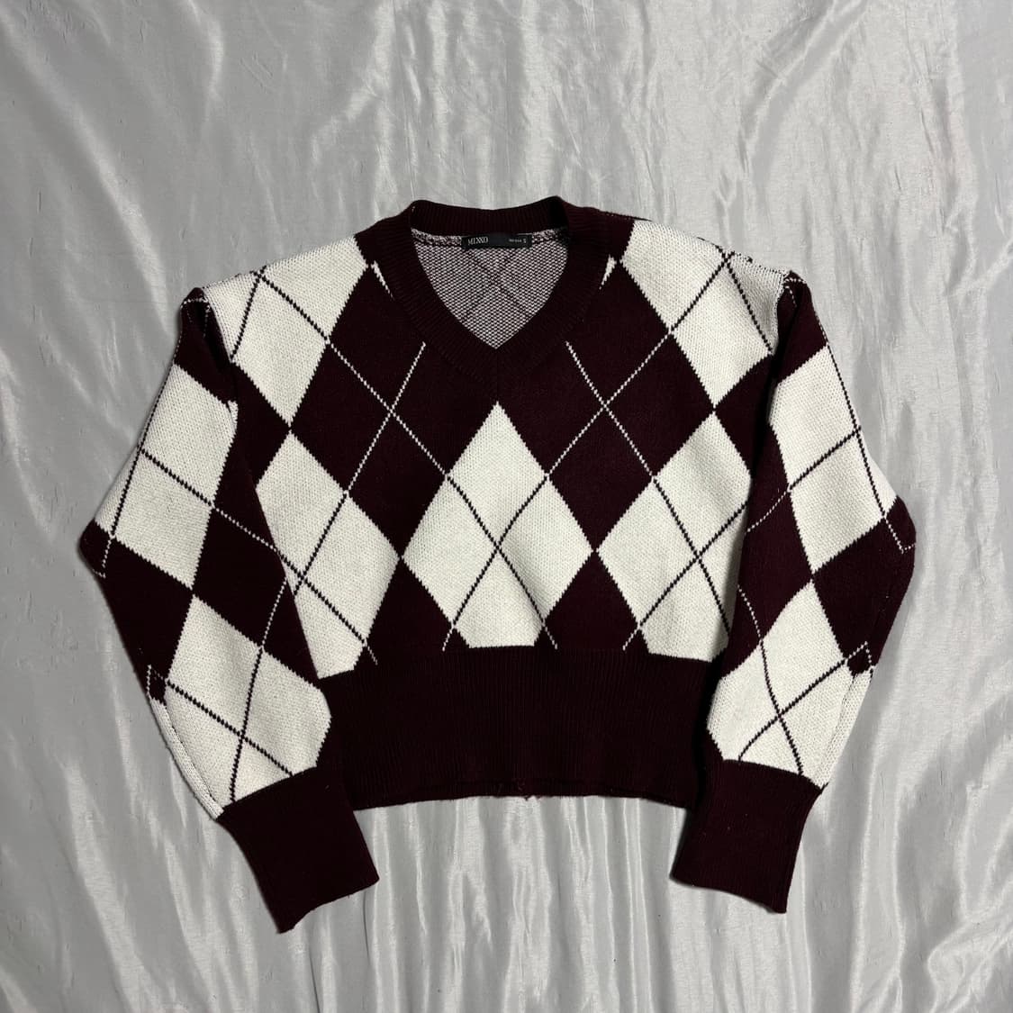 • 아가일 V넥 크롭 니트