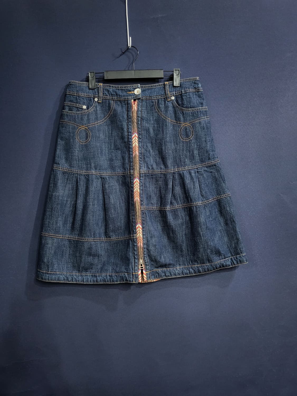 사이즈: 32(단면42cm) 색상: 사진과 같아요 소재: 면 (꼼꼼히 사진과 상세 설명 읽어주세요) 깨끗하고 아주좋아요 빈티지 느낌과 중앙을 가로지르는 지퍼라인을 따라 화려한 패턴이며 절개선과 주름이 디테일하며 A라인 실루엣이 특징이에요 총장62 #택배거래만 됩니다 # ~택배비 3200원입니다~ *반품 교환 환불*안되니 신중히 구매하세요