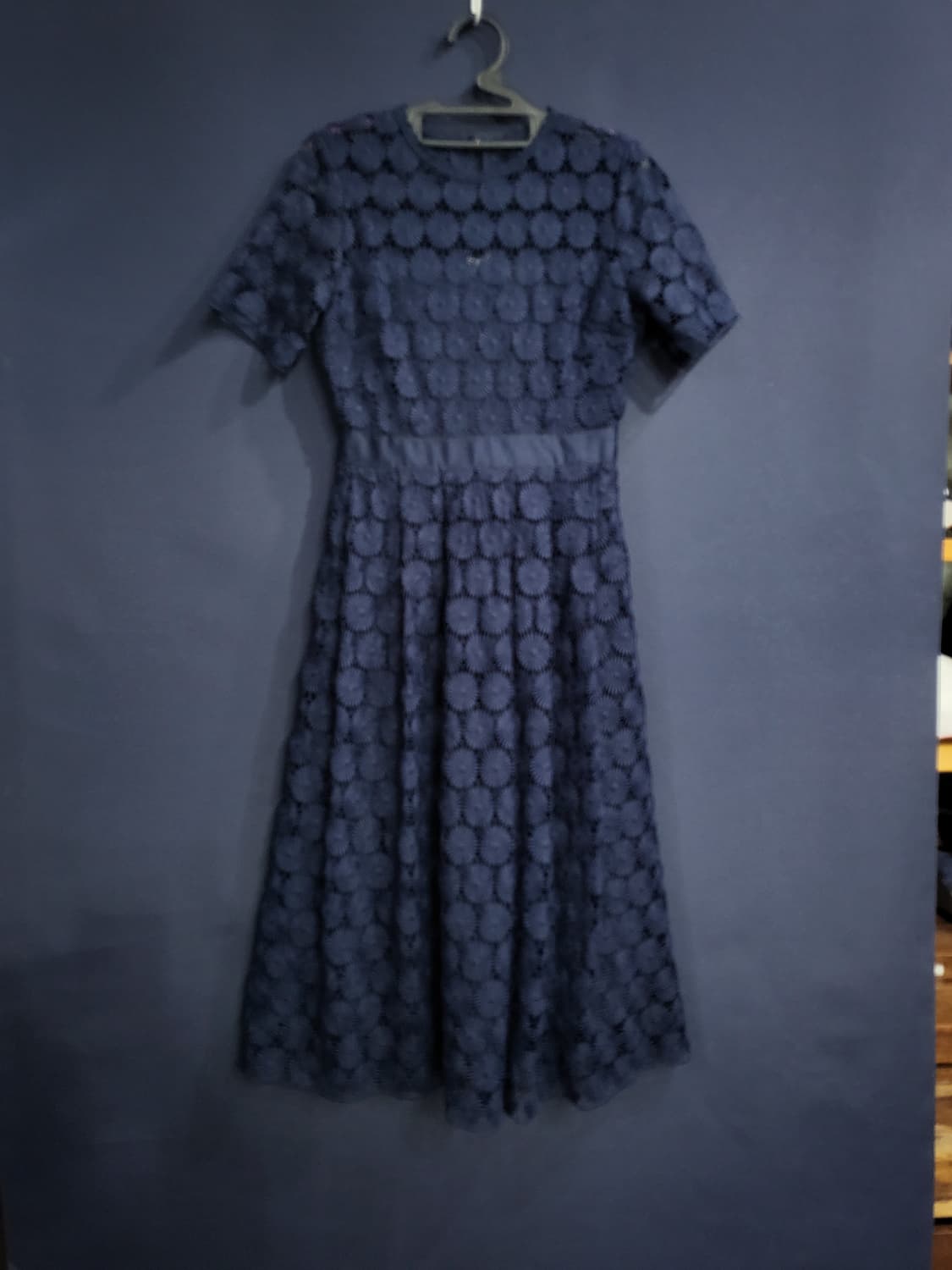 사이즈: S(55) 색상: 다크네이 (꼼꼼히 사진과 상세 설명 읽어주세요) 깨끗하고 아주좋아요 핏이 자체가 예술입니다 옷이 날개라는 말이 나올정도로 여성여성하며 격식자리든 어떤자리에도 어울리는 원피스에요 안감도 들어있어요 코르셔라서 살짝 무게감있어요 끝사진은 무늬보시라고 찍었어요 어깨38 가슴단면46 총장111 #택배거래만 됩니다 # ~택배비 3200원입니다~ *반품 교환 환불*안되니 신중히 구매하세요