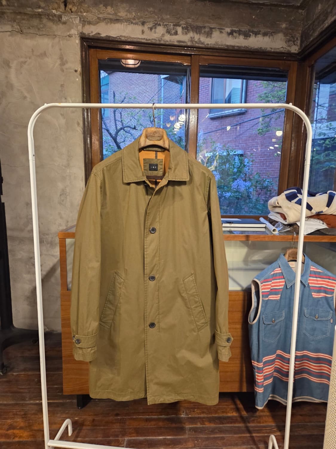 방풍방수에 능한 코튼혼방패브릭으로 연출된 인터메조의 맥코트입니다. 서정적인 올리브 그린톤의 자연스러운 색감만으로도 이미 근사한 모델입니다. 사이즈 100