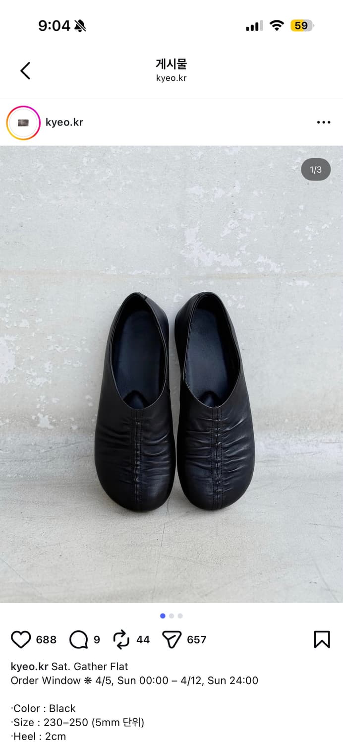 Kyeo 겨의 Sat. Gather Flat 250사이즈입니다. 작년 9월에 구매하여 2회 착용하였습니다. 사진에서는 반사이즈 다운을 권장하였지만, 저는 평소 신는 250으로 구매했더니 잘 맞았습니다! 상태는 새상품과 같고, 마지막 사진 참고해 주세요! 원가 97000원 저와 어울리지 않는 것 같아 판매합니다 🥲