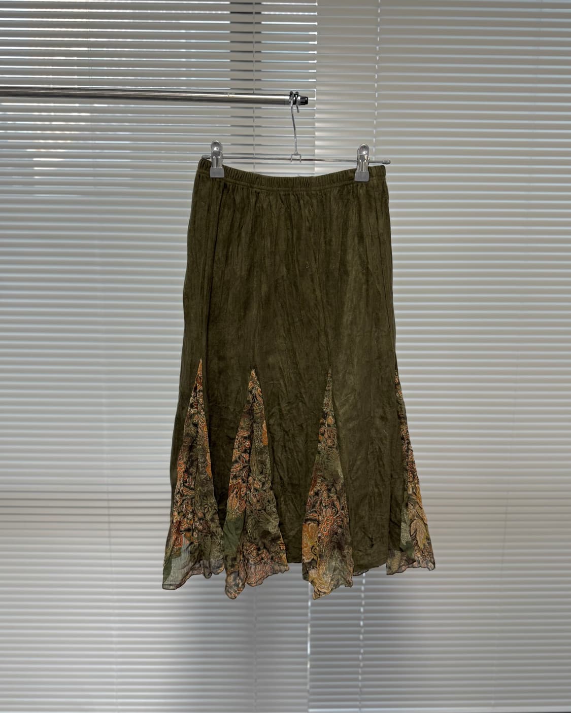 silent worth skirt Size [cm] 표기 : FREE 허리단면 : 31-49 총장 : 79 Material : poly -밴딩 -A라인 -데미지 Condition : C –Condition Guide– S : 새상품 A : 우수한 컨디션 B : 일상적 사용감 C : 빈티지 / 데미지