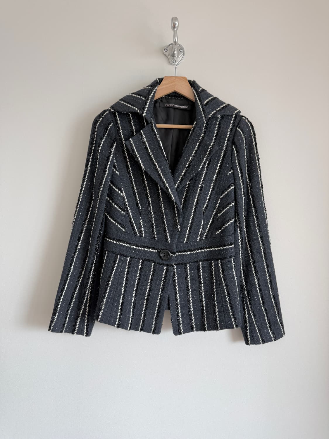박춘무(PARKCHOONMOO) 코튼 자켓 68,000원 - 실측: 총기장57.5 가슴단면47 어깨단면37 팔길이60.5 - 표기사이즈: 40 - 소재: 코튼80 나일론14 기타6 - 상태: 전반적으로 나쁘지 않은 컨디션, 부분 사용감 있음 - 비고: 데무의 박춘무 디자이너의 피스