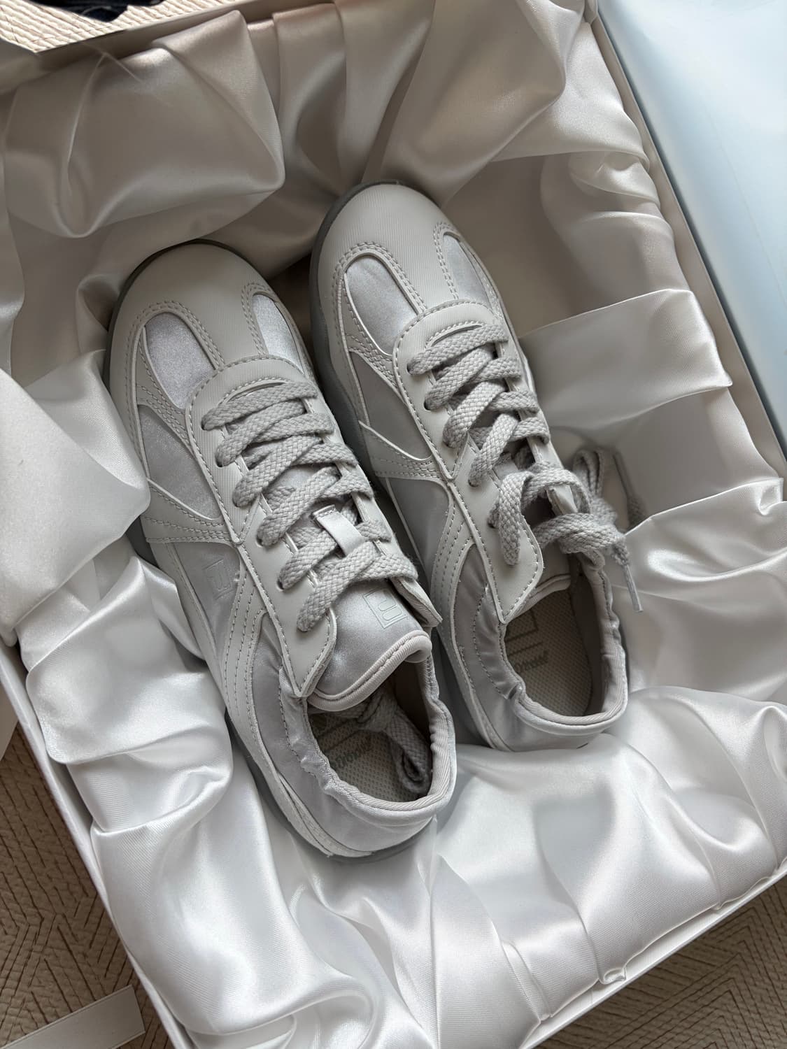 실버문 색상의 휠라 글리오 스니커즈 230사이즈입니다. 고급박스도 그대로 있는 완전 새상품 입니다. 현재 품절 이체시 -1000