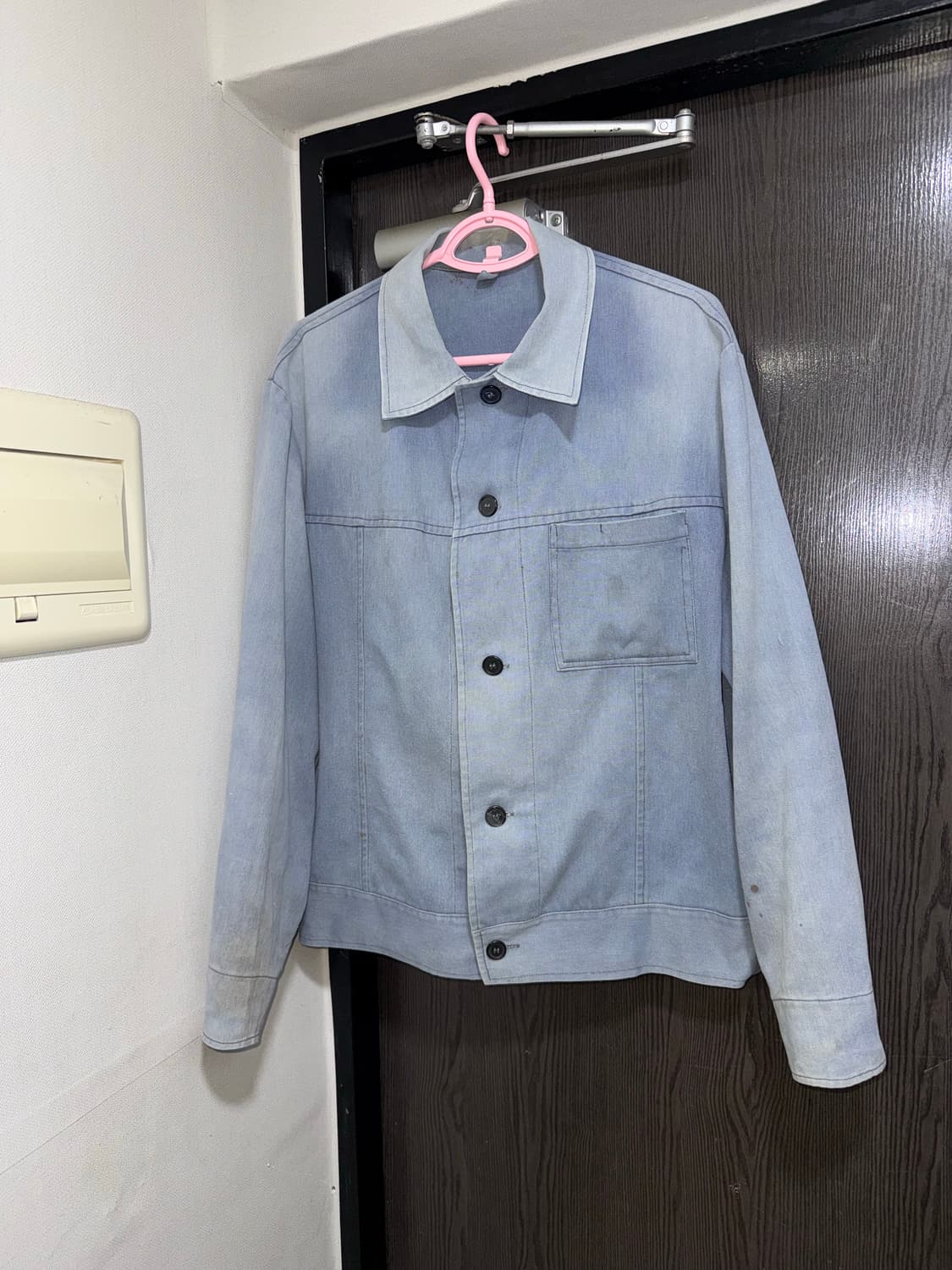 워싱이 죽이는 자켓입니다 ! 원단도 많이 깎인 상태라 얇고 셔츠처럼 입기 좋습니다 누구나 어울릴 만한 핏입니다 좋은 가격에 누려보세요 !