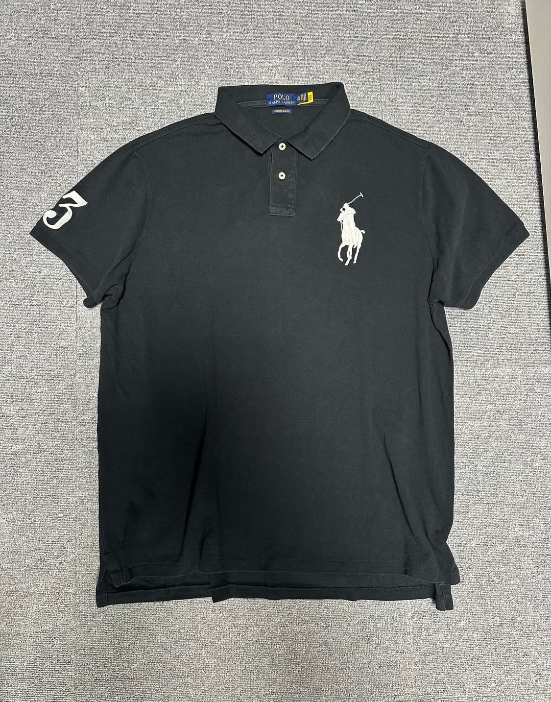 폴로 빅포니 카라티 블랙 xxl사이즈 판매합니다. 오염, 하자 일절없이 상태 좋습니다! 총장 앞면 73cm, 뒷면 77cm, 가슴단면 62cm, 어깨 48cm