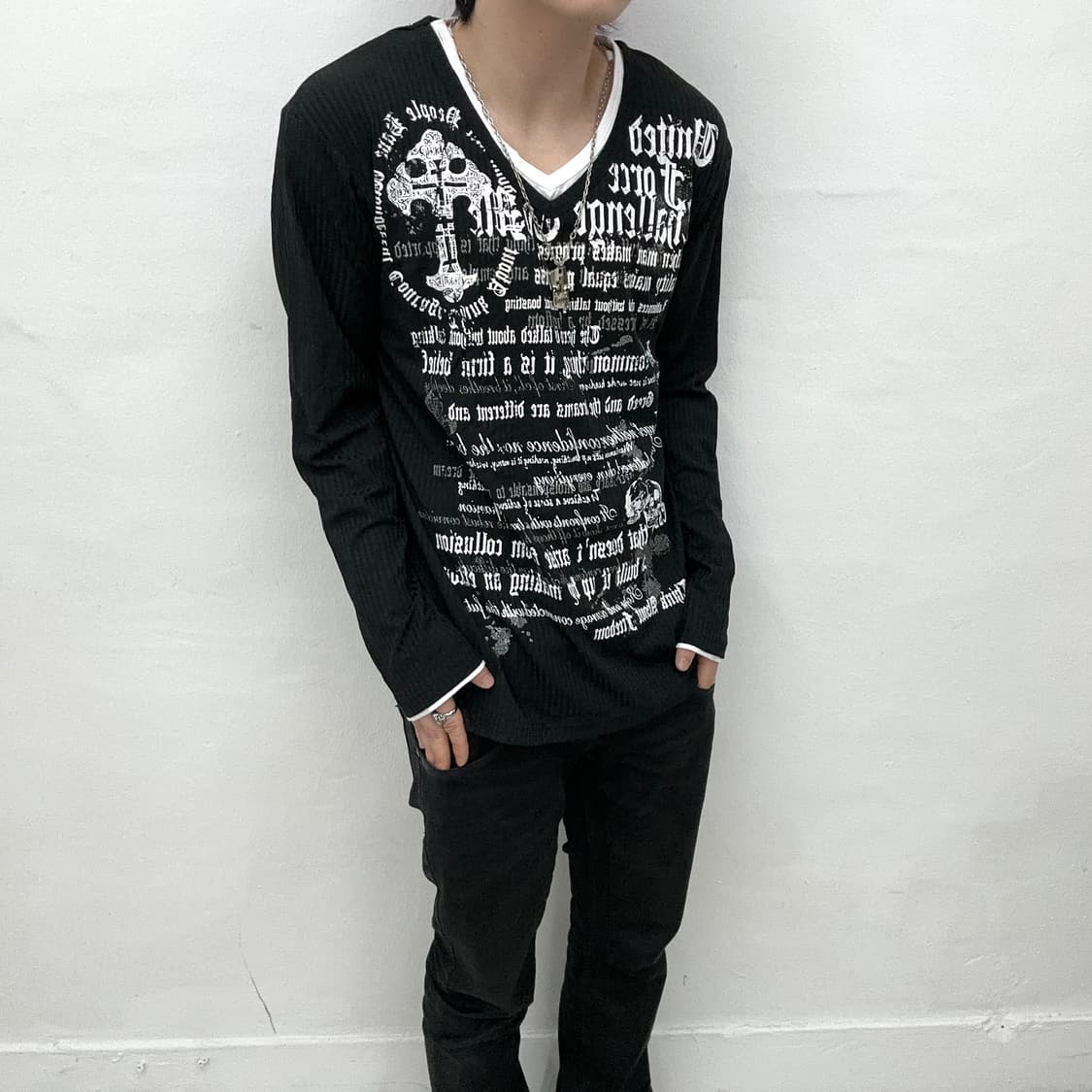 Punk lettering necklace long sleeve