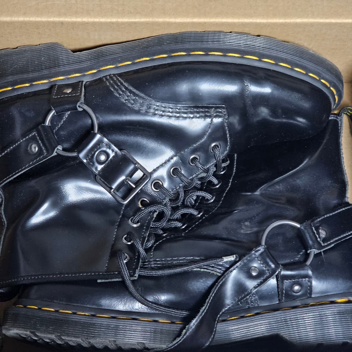 닥터마틴 하네스 워커 280사이즈 (UK9) 판매합니다. 스무스 가죽이고 큰 긁힘은 없으나 필요하시면 자세한 사진 보내드리겠습니다. 사진에서 보시는 것처럼 상태 좋고 많이 안 신어서 밑창도 좋습니다. 지퍼 없는 버전이라 더 클래식하고 주름도 양쪽 비슷하게 생겨서 관리하시면서 신으시면 좋을것 같아요 신발끈 끝 쪽에 플라스틱 찌그러진 부분이 있습니다. 박스는 없습니다 별도 문의 없으시면 바로 안전결제 부탁드려요!