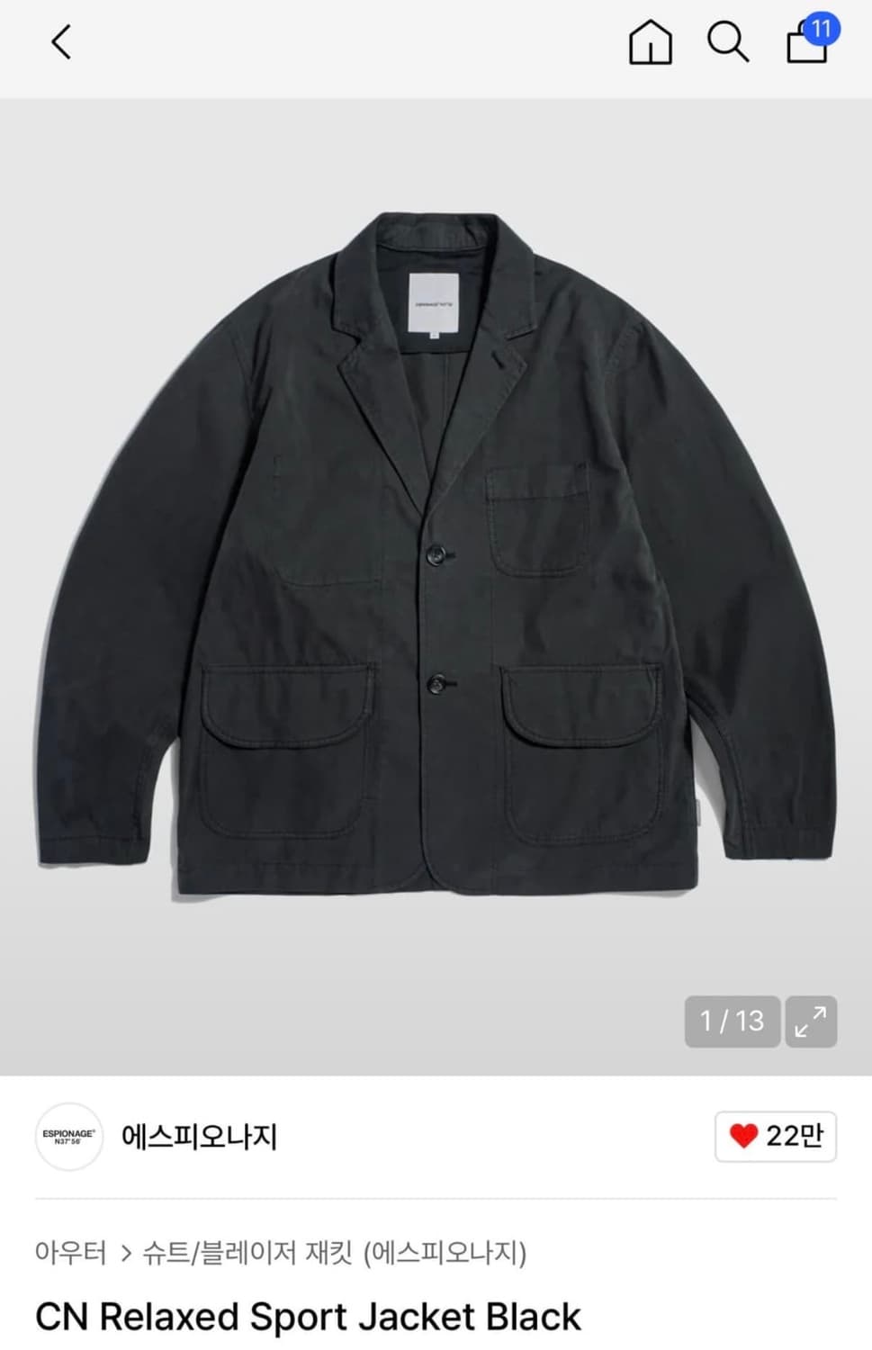 [L]프리즘웍스 Wandering 코튼 워크 블레이저/블랙