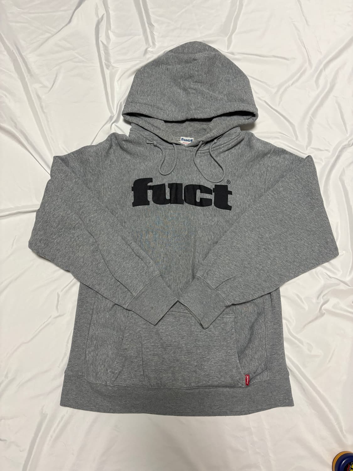 fuct 회색 후드티 사이즈 : L 표기사이즈 L이나 실측 m정도로 느껴집니다 사용감이 어느정도 있습니다