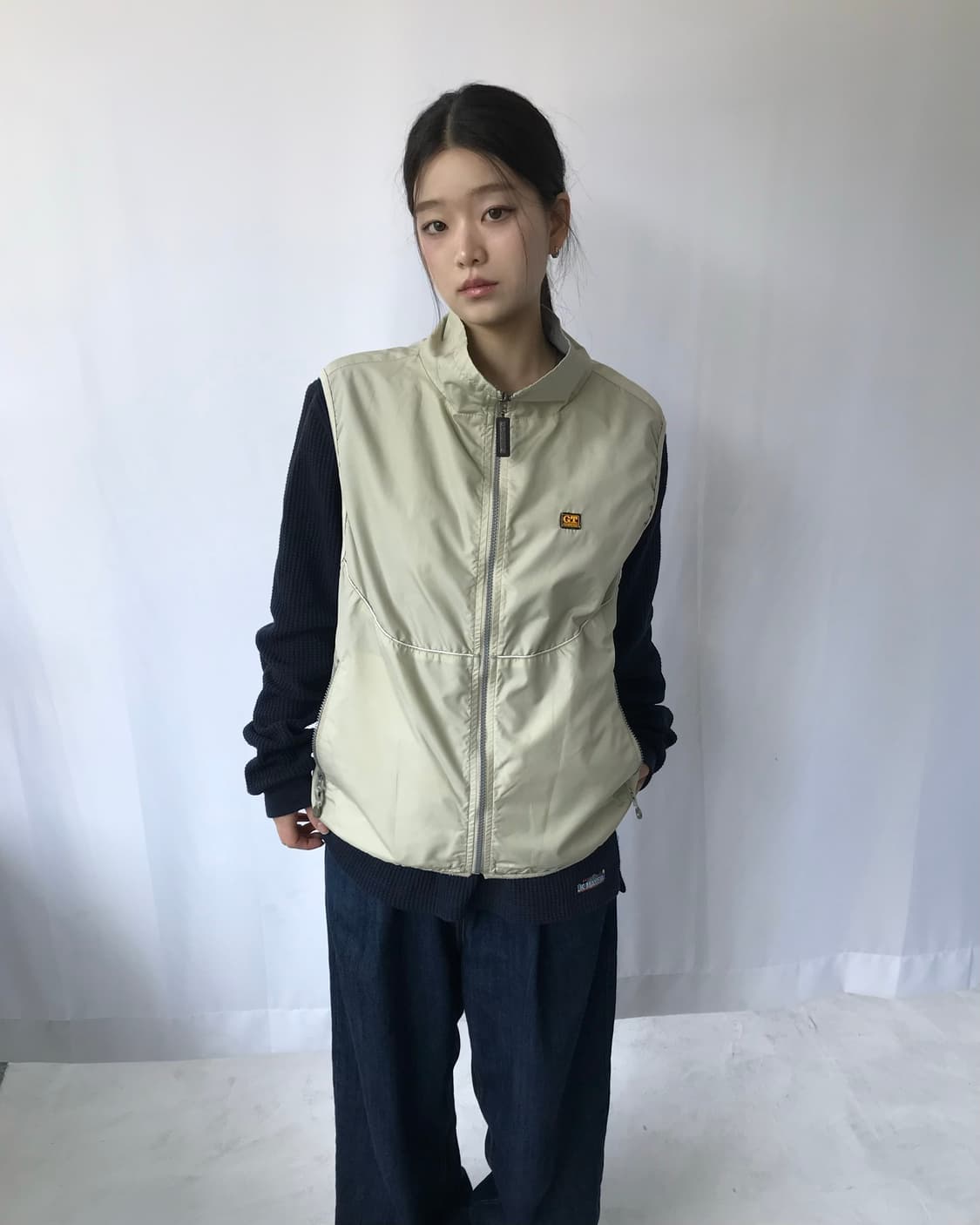 ⊹ Top - Hawkins Reversible Zip-Up Vest -size(cm): 어깨43 | 가슴52 | 총장70 ₩ 35,000 *안쪽부분만 자잘한 이염 많음