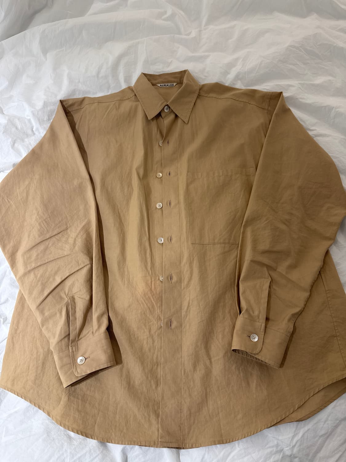 Auralee WASHED FINX TWILL BIG SHIRT Size 3 Beige 기장 76 가금 58 팔기장 60