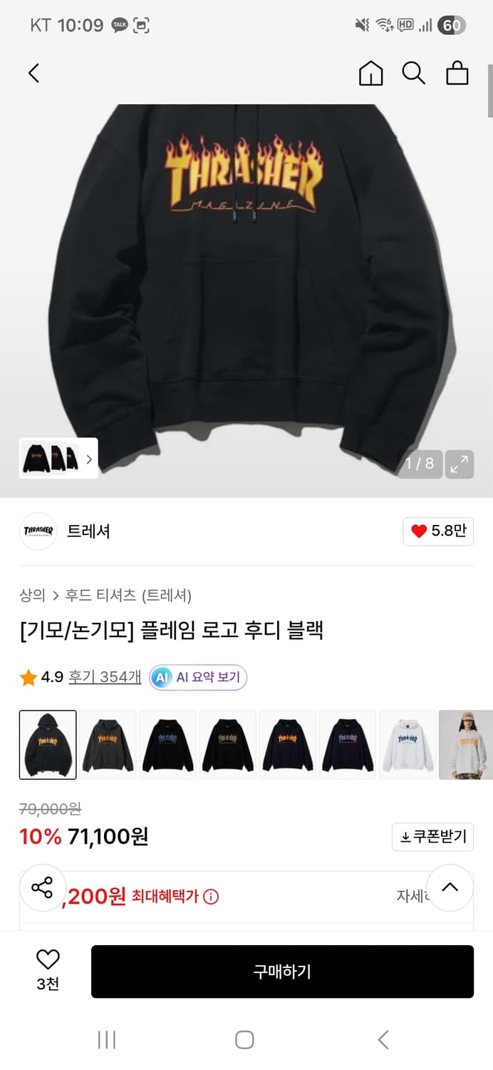 • 트레셔 THRASHER 플레임 로고 후드티 블랙