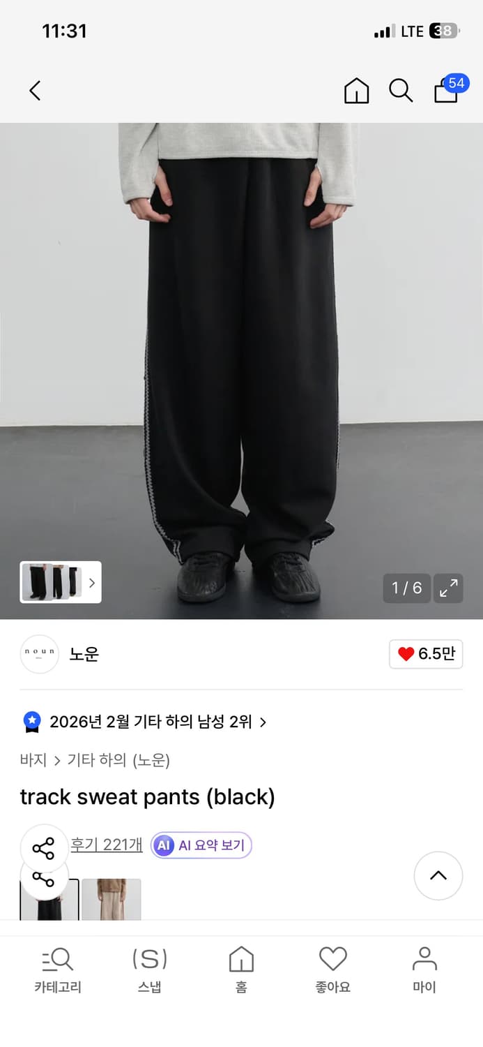 (L) 주앙옴므 트랙 스웻 팬츠 블랙