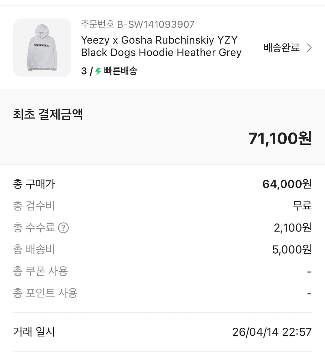 이지 x 고샤 루브친스키 블랙 독스 후드 헤더 그레이 2사이즈