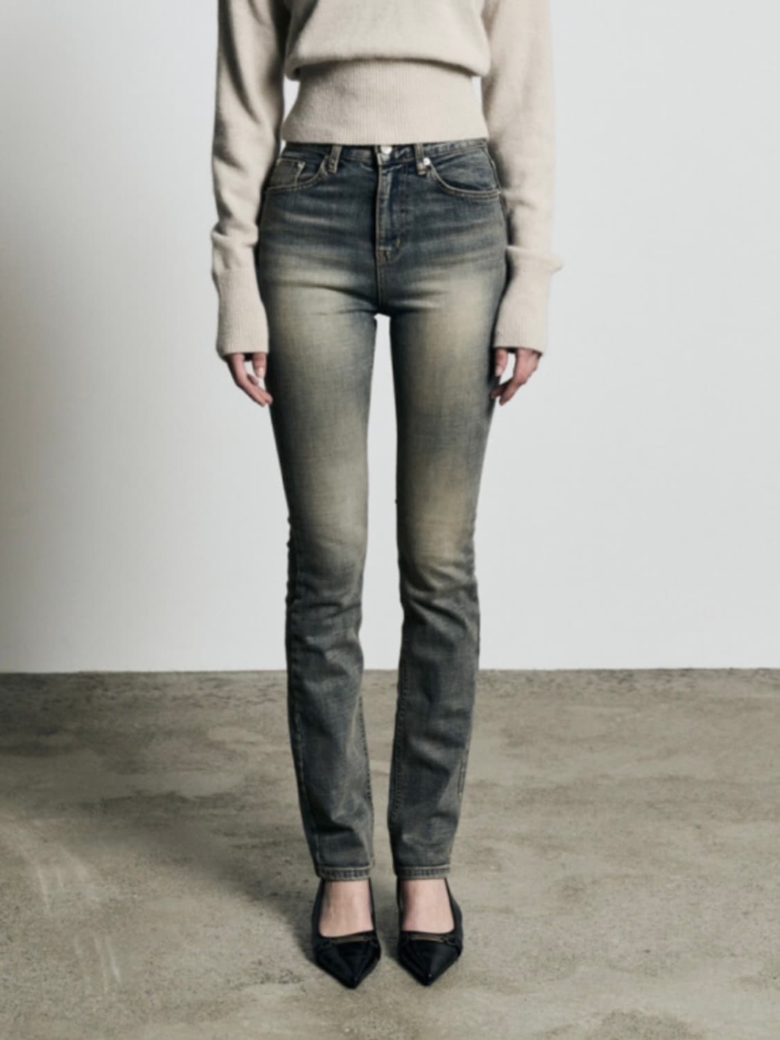 • OJOS 오호스 더블 웨이스트 데님팬츠