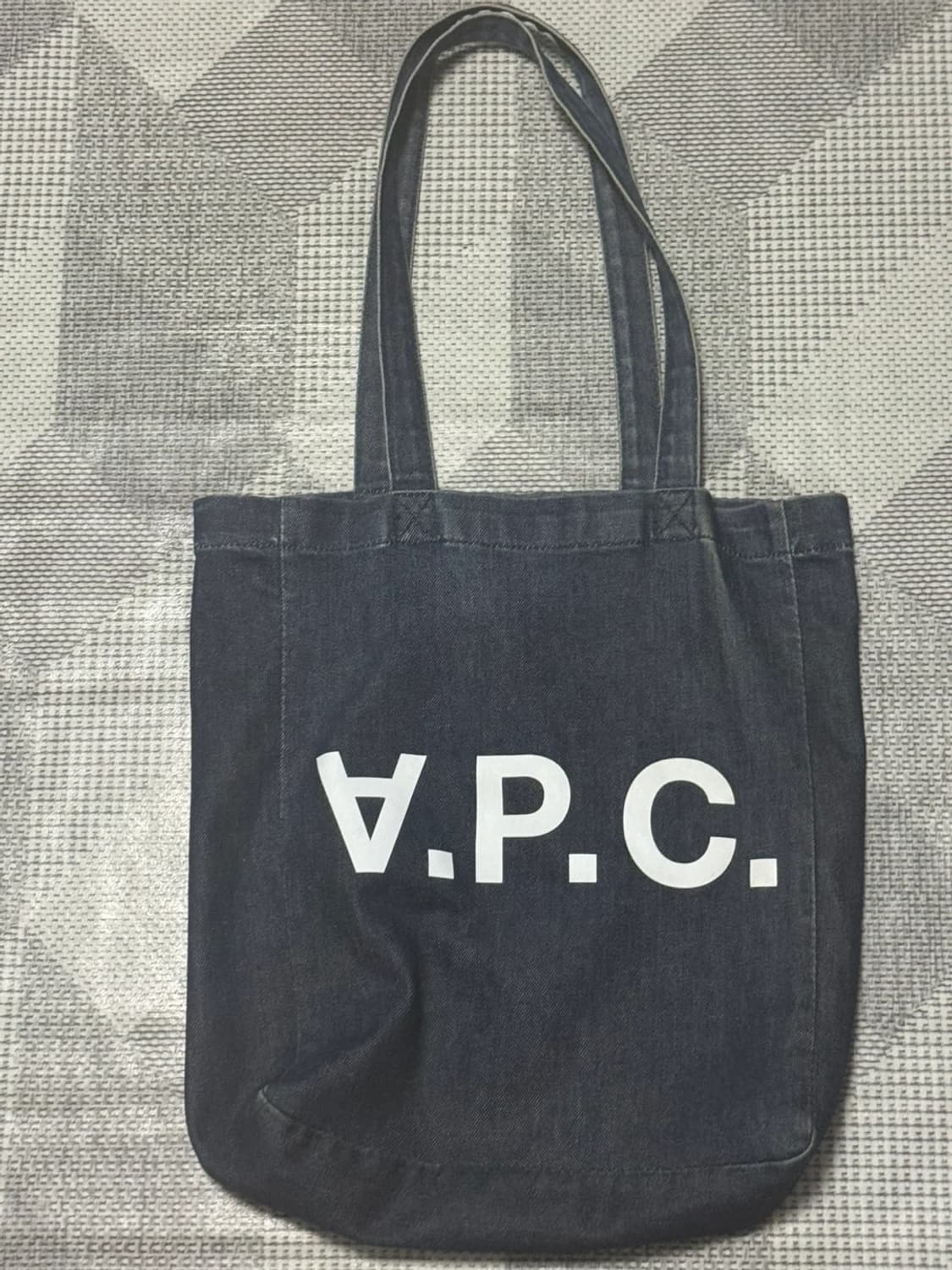 깔끔한 데님 소재의 A.P.C. 에코백이에요 넉넉한 수납공간으로 데일리로 들기 좋아요 가볍고 튼튼해서 실용적이에요 어떤 옷에도 잘 어울리는 매력적인 가방이랍니다