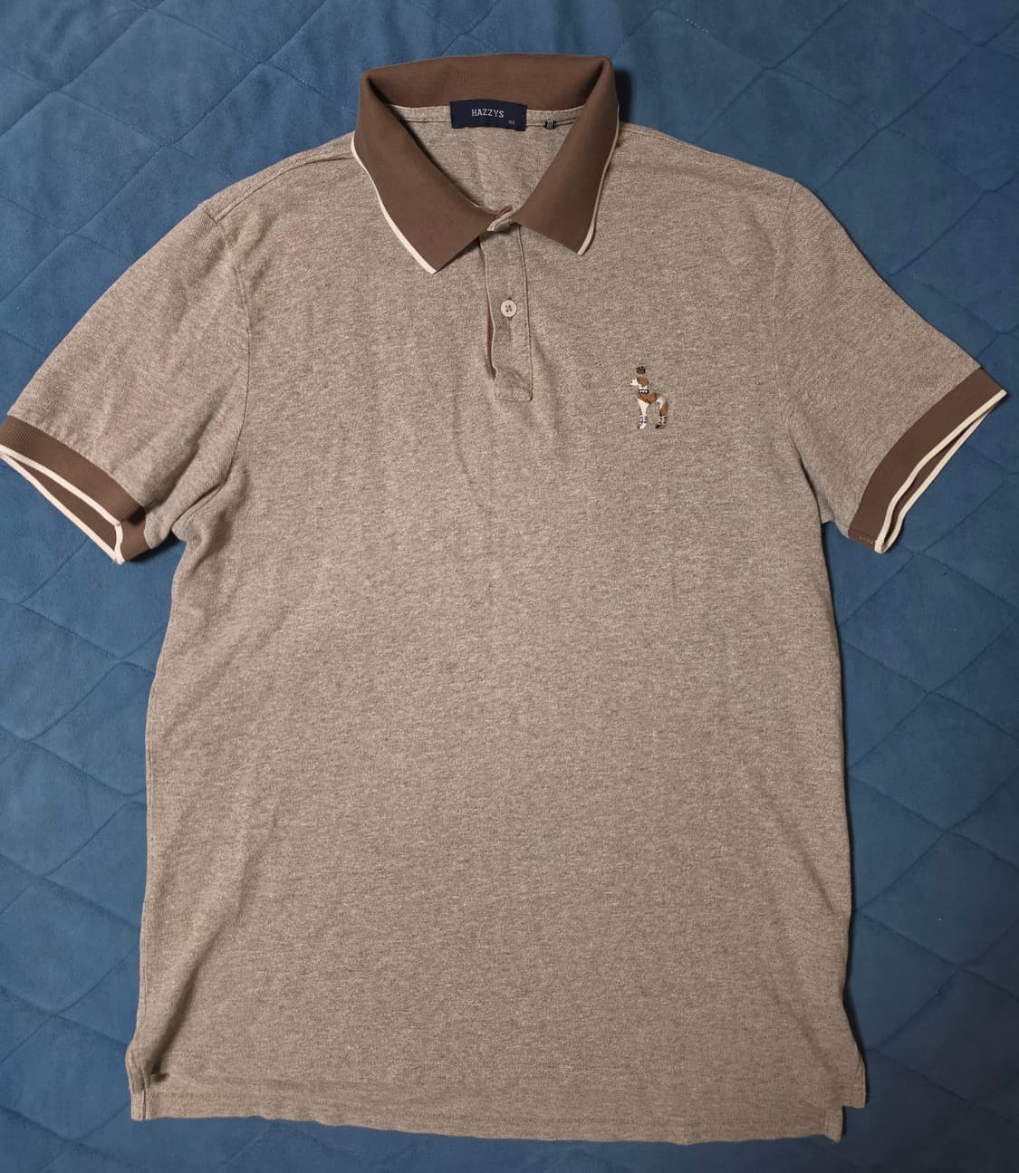 헤지스 브랜드의 남성 카라티셔츠입니다 사진에서 보이는 것처럼 브라운 색상에 깔끔한 디자인이 돋보여요 사이즈는 105이며, 편안하게 착용하기 좋습니다 데일리룩으로 활용하기 좋은 아이템이에요 팔안쪽 살짝 구멍이 있긴한데 입으면 전혀 안보이는 수준입니다