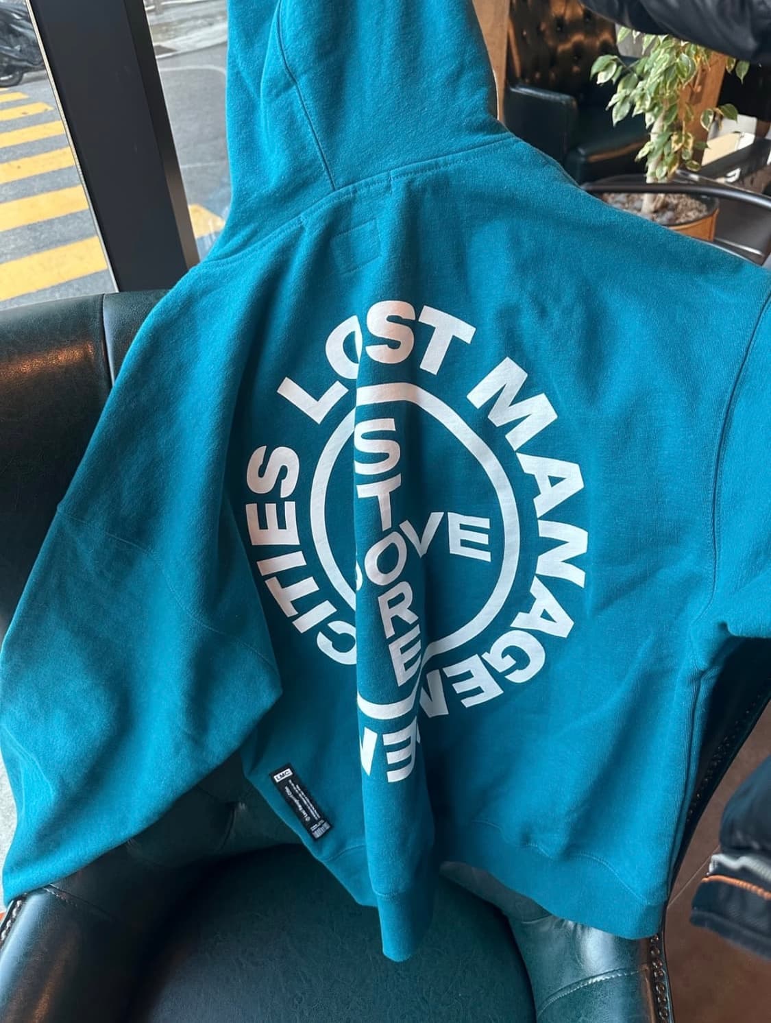LMC와 A6OVE 콜라보 후드티 dk teal 색상 L사이즈입니다