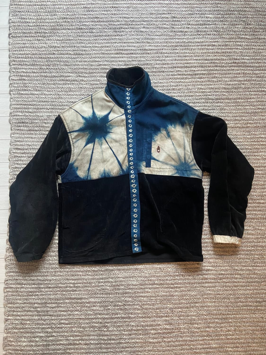 스토리 mfg 자켓입니다. 두껍지 않아서 봄,가을 날씨에 딱입니다. 총장 70 어깨 58 팔길이 60 가슴 58 천연염색 특성상 세탁시 이염가능성이 있습니다. 주의해주세요.