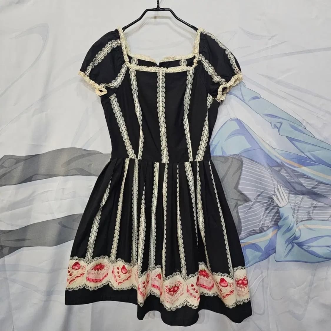 에밀리 템플 큐트 미디 원피스입니다. 검정색 바탕에 레이스와 케이크 그림이 포인트입니다. 특별한 날에 입으면 더욱 예쁠 것 같아요. 문의 없으시면 바로 안전결제해주시면 됩니다! 토토로빈티지 제품은 수입 빈티지 제품입니다 전체적으로 상태 양호한 제품만 업뎃해요 * 사이즈 * - 가슴반품 43 - 총기장 92