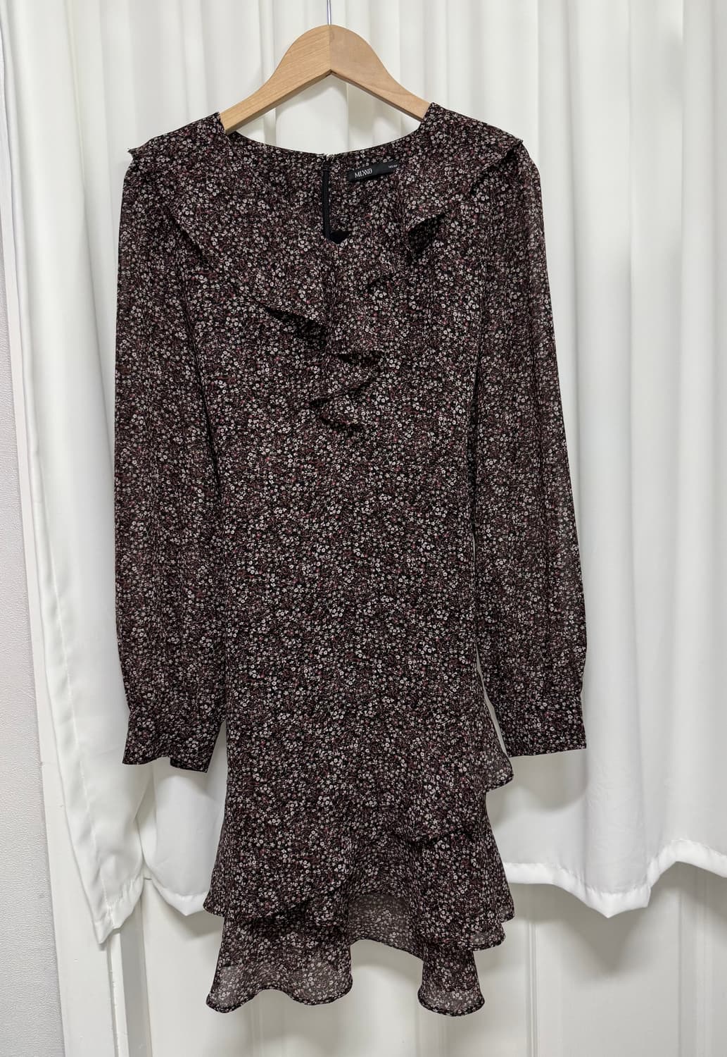 잔잔한 플라워 패턴이 매력적인 MIXXO 원피스입니다. 샤랄라한 쉬폰소재와 프릴 디테일로 여성스러운 무드를 더했습니다. 레더자켓이나 가디건과 매치해서 입으셔도 스타일리시해보이고 단독으로 입으셔도 예쁜 디자인입니다 ^^ ✅표기사이즈M 실측가단45 총장84~90