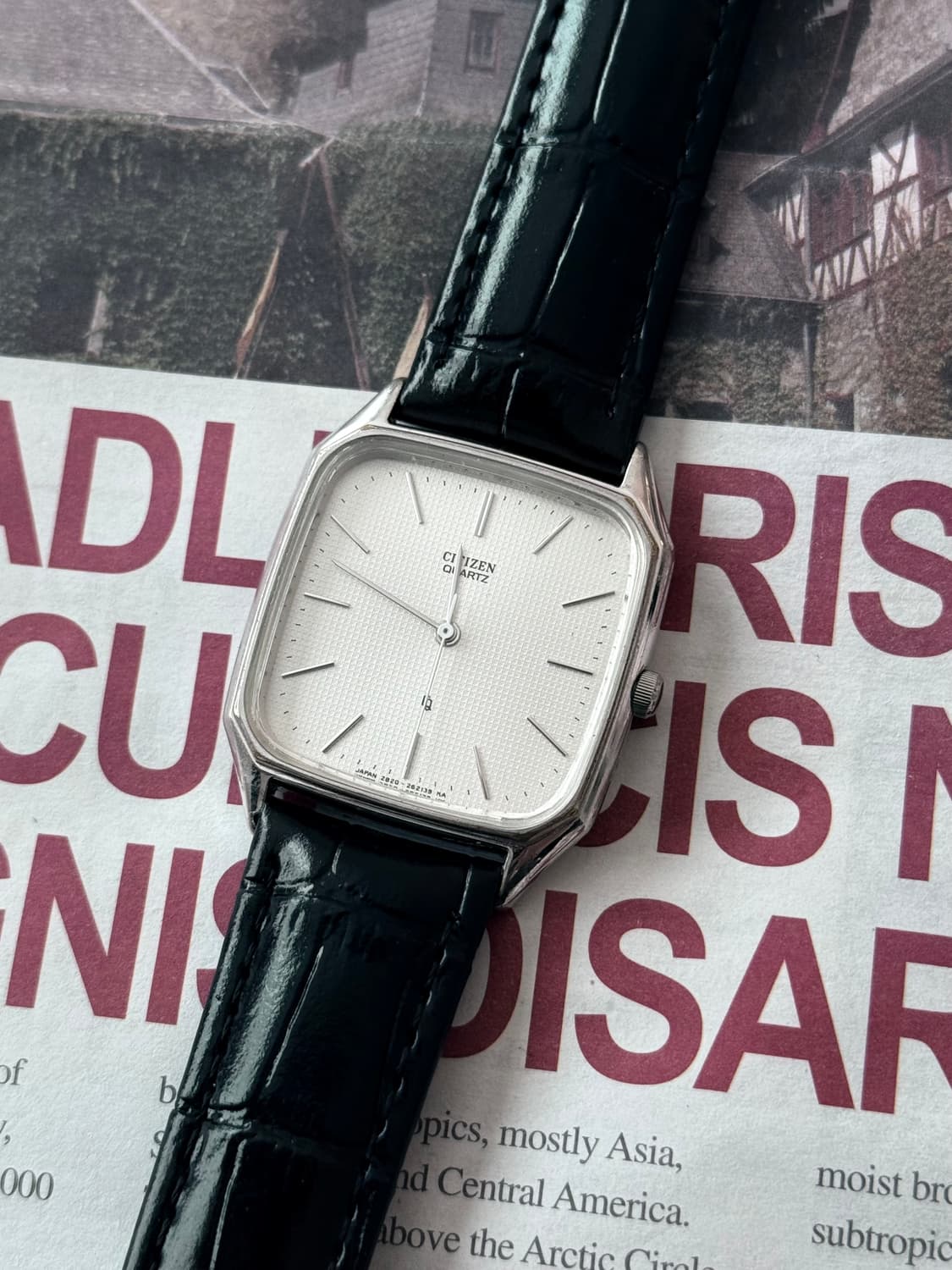 Citizen 시티즌 스퀘어 쿼츠 Price: 183,000 상태 10/10 -💡 절제된 우아함과 빈티지한 감성이 공존하는 시티즌(CITIZEN) 스퀘어 쿼츠. 이 모델은 전형적인 라운드 디자인에서 벗어나, 부드러운 곡선과 직선이 조화를 이루는 탱크 스타일의 스퀘어 케이스를 채택하여 손목 위에서 더욱 특별한 존재감을 드러냅니다. 가장 시선을 사로잡는 디테일은 바로 격자무늬 패턴(Waffle Dial)이 가미된 화이트 다이얼입니다. 민무늬 다이얼보다 훨씬 입체적이고 고급스러운 느낌을 주며, 빛이 반사될 때마다 미세한 질감이 살아나 시계의 전체적인 완성도를 높여줍니다. 그 위로 얇고 길게 뻗은 스틱 핸즈와 인덱스가 배치되어 군더더기 없는 미니멀리즘의 정수를 보여줍니다. 시계 뒷면인 백케이스에는 무브먼트 형식(2830-263008 K)과 시티즌 고유의 각인이 선명하게 새겨져 있어 일본 시계 제조의 신뢰성을 증명합니다. Base Metal WP 사양의 실버 케이스는 빈티지 특유의 은은한 광택을 유지하고 있으며, 유선형으로 떨어지는 러그 라인은 손목을 부드럽게 감싸주어 최상의 착용감을 선사합니다. 여기에 매치된 블랙 크로코 패턴 가죽 스트랩은 화이트 와플 다이얼과 대비를 이루며 클래식한 드레스 워치로서의 면모를 완성합니다. 셔츠 소매 안으로 쏙 들어가는 얇은 두께감 덕분에 비즈니스 웨어는 물론, 격식 있는 자리나 일상의 깔끔한 룩에도 포인트 아이템으로 완벽하게 어우러집니다. 시대를 타지 않는 세련된 사각 프레임 워치를 찾으시는 분들에게 더할 나위 없는 선택이 될 것입니다. 〰️ SIZE :스트랩 235 지름 가로 30(용두제외) -빈티지 특성상 교환,환불 불가합니다