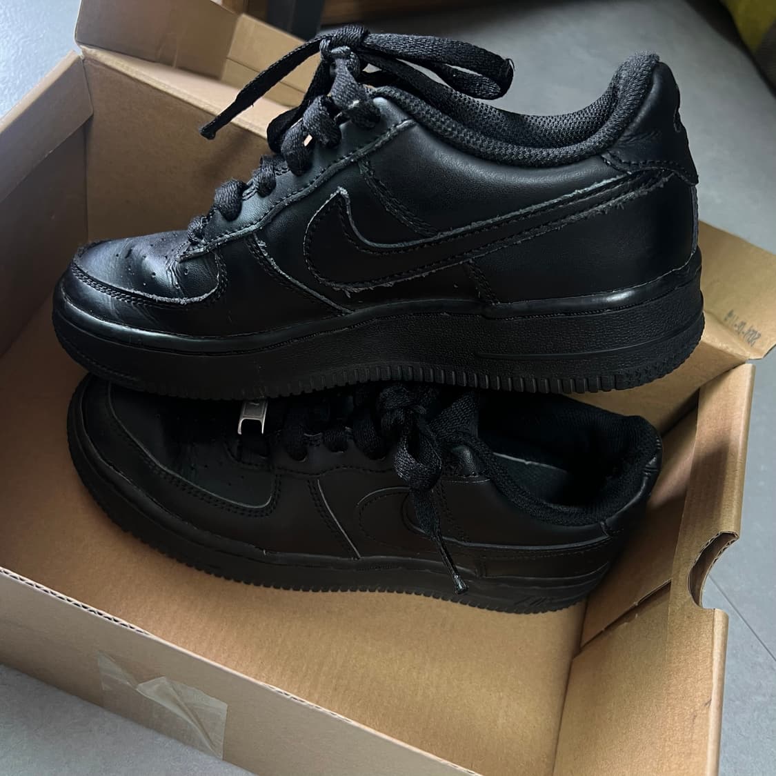 나이키 에어포스1 올블랙 225 사이즈 판매해요 클래식한 디자인으로 어떤 옷에도 잘 어울리는 신발이에요 데일리로 신기 좋은 에어포스1 놓치지 마세요 사진 확인해주세요