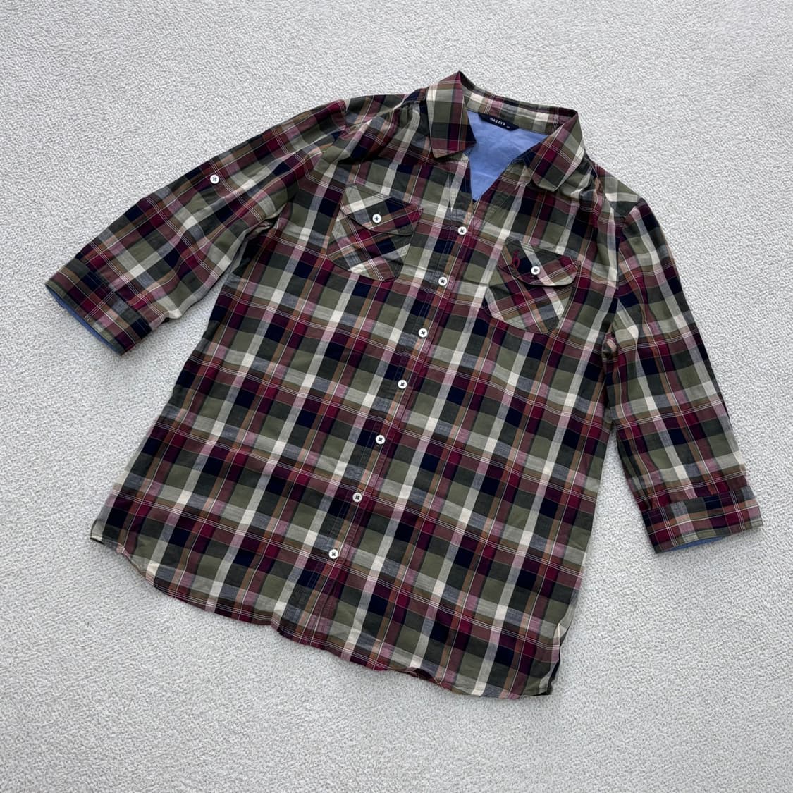 • 90 헤지스 투포켓 체크 패턴 셔츠 0416E