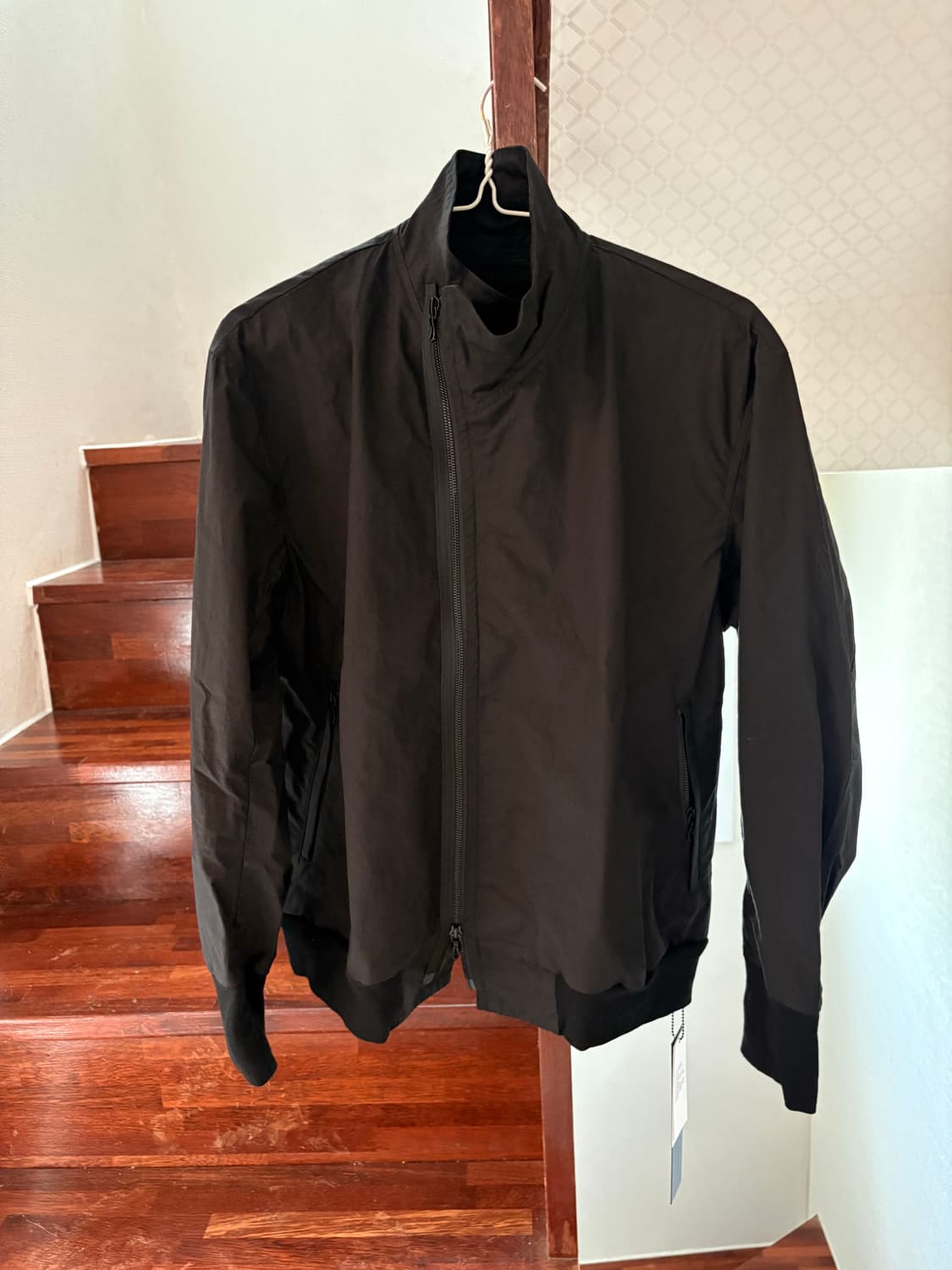 Julius asymmetric high-neck jacket JULIUS의 집업 자켓으로, 코튼·린넨 혼방 타입라이터 원단과 비대칭 하이넥, 투웨이 지퍼가 어우러진 미니멀한 다크 무드의 아방가르드 아이템입니다. Shoulder: 47 Chest: 52.5 Length: 62 Sleeve: 60 개봉만 되어있는 새 상품입니다. 얇은 소재로 지금 날씨에 딱 입기 좋은 피스.