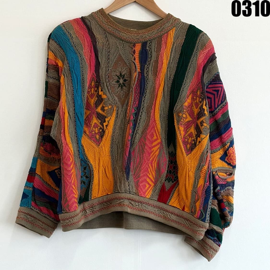 가슴단면 59 총장 56 팔 43 쿠지(Coogi) 오스트레일리아 정품 니트 스웨터입니다. 코기는 독창적인 입체 패턴과 화려한 컬러 조합으로 유명한 브랜드로, 특히 90년대 힙합 문화와 빈티지 패션에서 높은 인지도를 가진 브랜드입니다. 해당 제품 역시 코기 특유의 멀티컬러 3D 패턴이 적용된 모델로 다양한 색감과 입체적인 케이블 짜임이 특징인 아이코닉한 디자인입니다. 전체적으로 브라운 베이스에 레드, 옐로우, 블루, 그린 등 다양한 컬러가 조합된 코기 특유의 아트워크 패턴이 적용되어 단독 착용만으로도 강한 존재감을 보여주는 제품입니다. 입체감 있는 짜임과 두툼한 니트 조직으로 제작되어 착용 시 실루엣이 풍부하게 살아나며 빈티지 스트릿 스타일이나 힙합 스타일 코디에 매우 잘 어울리는 아이템입니다. 라벨을 통해 COOGI AUSTRALIA 정품 라인 제품임을 확인할 수 있으며 원산지는 호주(Australia)로 표기된 수입 정식 제품입니다. 또한 소재는 면 100% 코튼 니트로 제작되어 일반 울 니트 대비 관리가 편하고 착용감이 부드러운 것이 특징입니다. 코기 니트 특성상 동일한 패턴이 거의 없기 때문에 개체마다 희소성이 있는 모델입니다. 표기 사이즈는 100으로 국내 남성 기준 L 정도의 여유 있는 핏으로 착용 가능하며 오버핏 스타일로도 활용하기 좋은 제품입니다. 빈티지 쿠지 니트 특성상 현재도 힙합 및 빈티지 패션 시장에서 꾸준히 수요가 있는 인기 아이템입니다. 정품 여부는 택 디자인, COOGI AUSTRALIA 로고 라벨, 원산지 표기 등을 기준으로 확인했을 때 정품으로 판단됩니다.