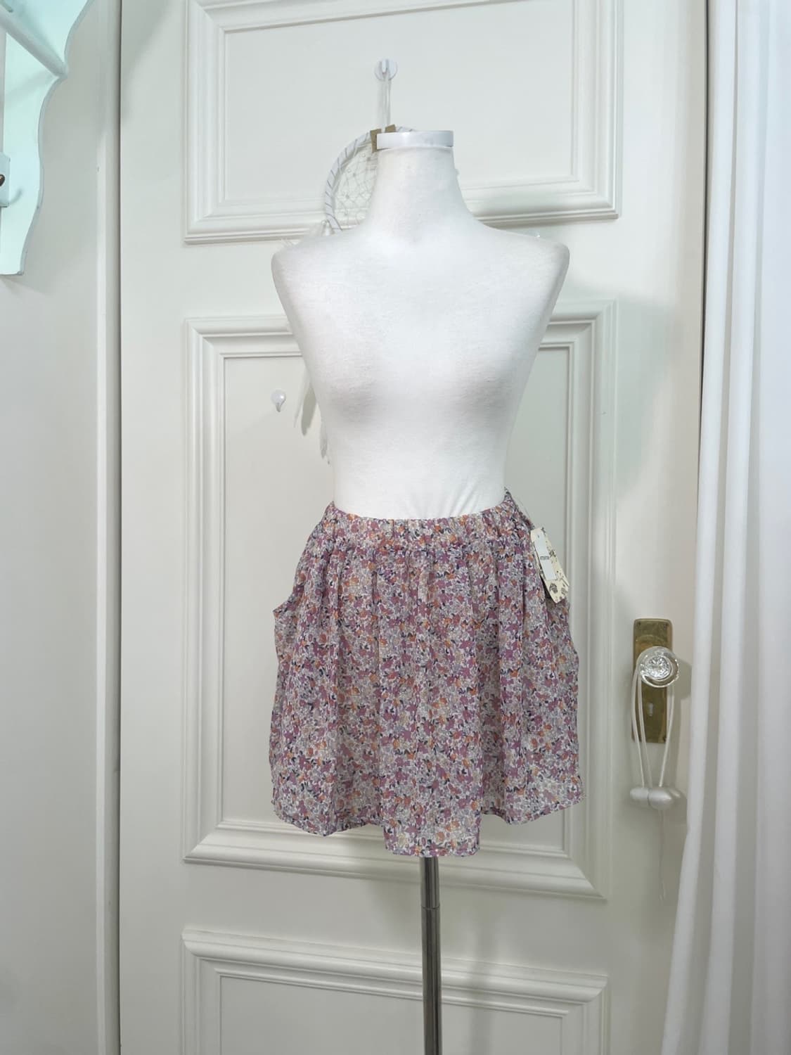 purple flower pocket chiffon banding mini skirt(size-L, deadstock) 퍼플 플라워 포켓 쉬폰 밴딩 미니 스커트