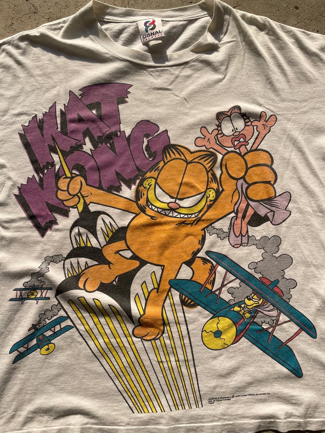 🔌 90s Garfield King Kong Parody T-shirt 애니메, 스포츠 공식 티셔츠를 제작했던 Signal 베이스의 오피셜 가필드 킹콩패러디 티셔츠. 가단 69.5의 보기 드문 큰 사이즈감의 개체. _싱글스티치 사양. _하자 없는 컨디션. - Size : 표기 미상(실사이즈감 남성 105~107_가슴/총장 : 69.5/72)