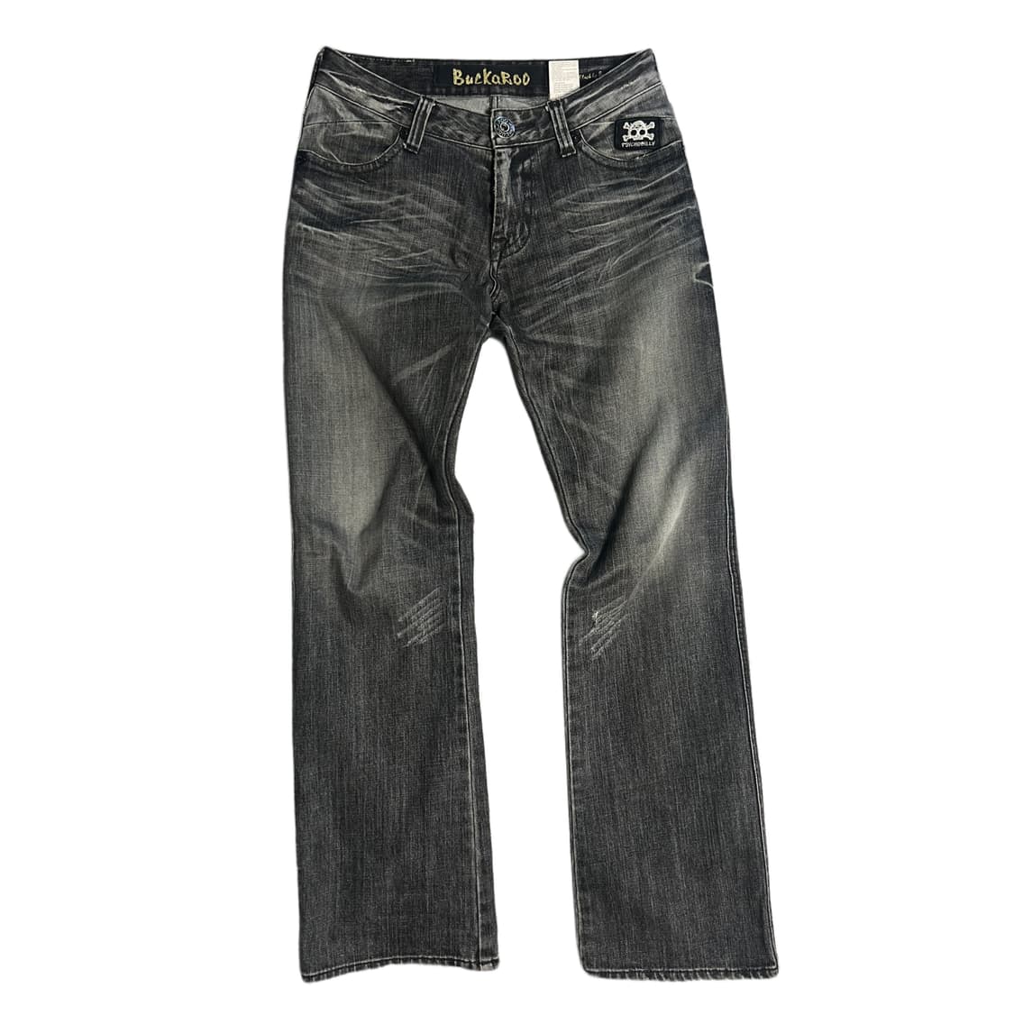 오른쪽 뒷주머니 단추 x 밑단 20 밑위 26 허벅지 26 허리 37 총장 99 1-2센치 오차가 있을수도 있습니다! 약간 로우라이즈 느낌도 있어서 여자분들도 이쁠거 같아요 핏 진짜 이쁩니다.. ㅇㅊ시 택포
