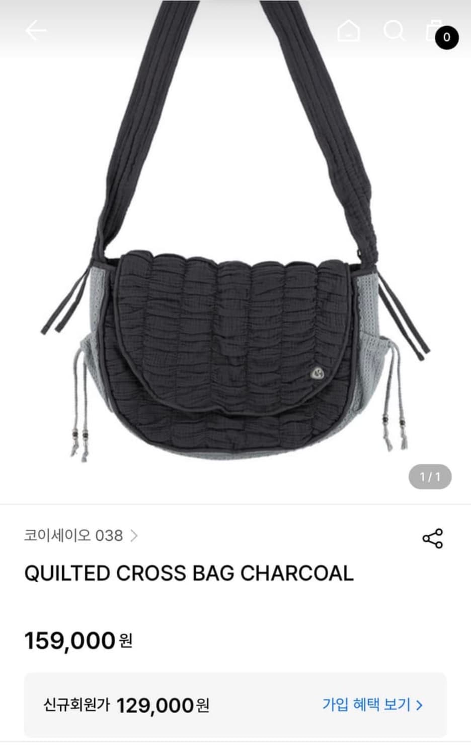 코이세이오 QUILTED CROSS BAG CHARCOAL