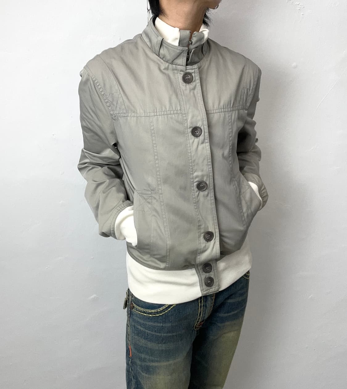 Dolce & Gabbana 2000s Buckle Neck Button Jacket 이탈리아 럭셔리 하우스 돌체앤가바나의 2000년대 아카이브 자켓입니다. 넥 라인에 버클 스트랩이 적용되어 하이넥으로 올려 입거나 자연스럽게 풀어 연출하는 등 다양한 스타일링이 가능하며, 버튼 클로징 구조와 밑단 립 디테일이 어우러져 짧고 탄탄하게 떨어지는 실루엣을 만들어줍니다. 당시 돌체앤가바나 특유의 바디라인을 살리는 패턴감이 살아있어 착용 시 핏 완성도가 높은 제품이며, 과하지 않은 디테일 속에서 확실한 브랜드 감도가 느껴지는 피스입니다. detail: 어깨 45 가슴 49 소매 70 총장 67 condition: B+ (하부에 약간의 퇴색이 존재하나 밝은 워싱 컬러감 특성상 실제 착용 시 크게 도드라지지 않습니다.) Size: 44 price: 190,000