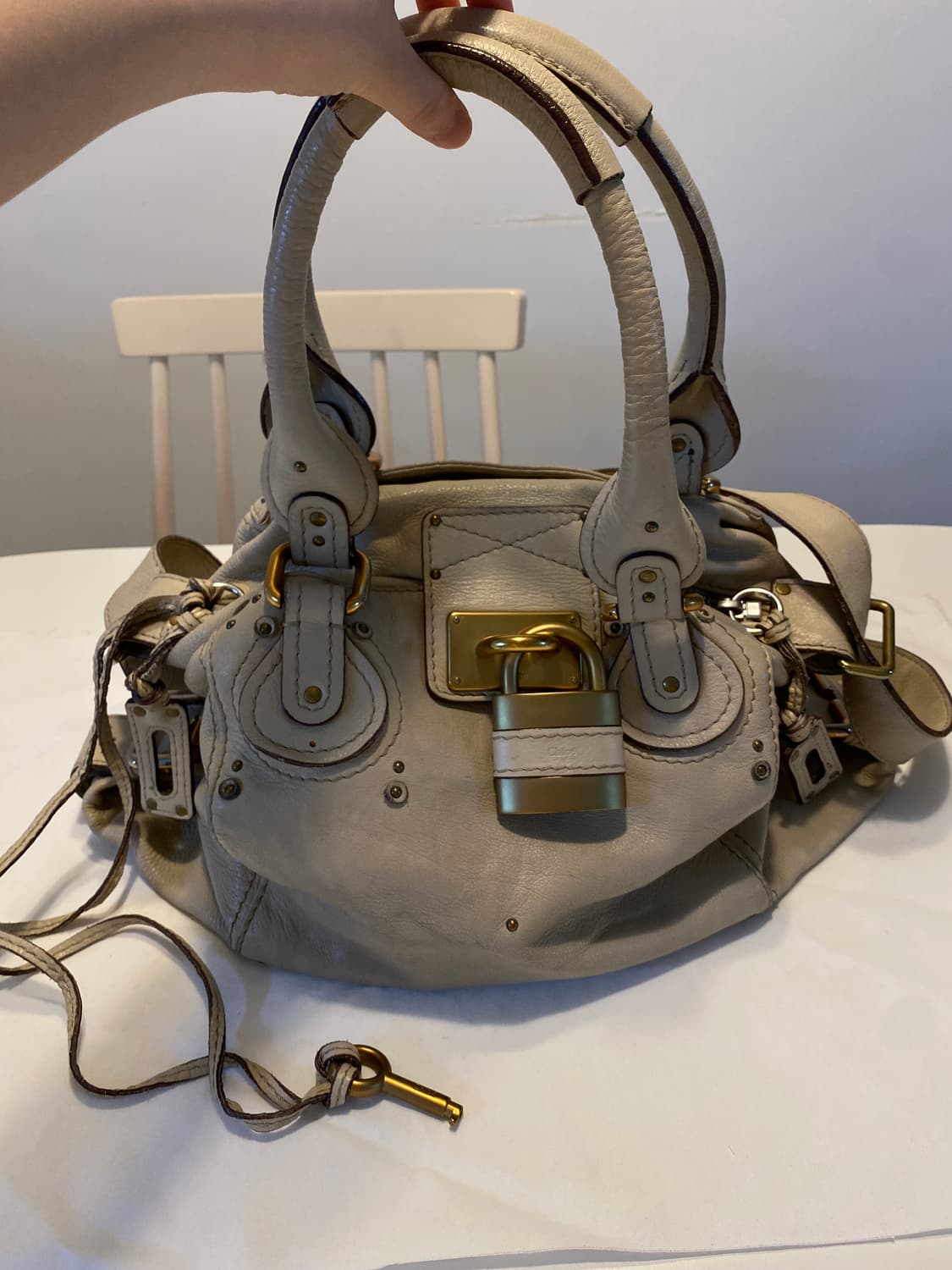 • 끌로에 빈티지 패딩턴백 카키그레이 라지사이즈